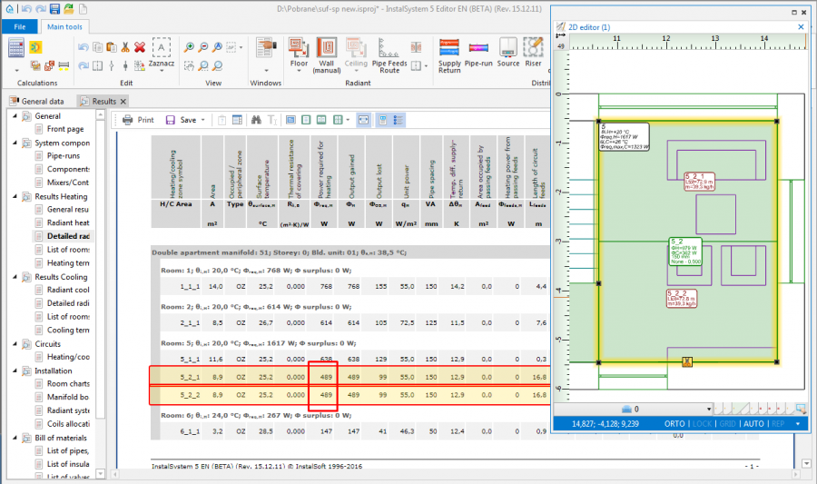 Wybór tego kryterium skutkuje podziałem na elementy Pow. grzewczo-chłodząca, w których jest identyczna strata ciśnienia (dopuszczalna odchyłka to 5% pomiędzy długościami rur w pętli). - Powierzchnia