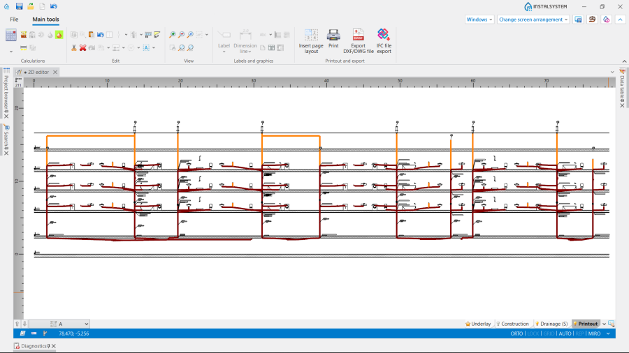 Przedstawione kroki do wykonania są uproszczoną formą scenariusza przedstawionego w podstawowej lekcji projektowania instalacji kanalizacji sanitarnej grawitacyjnej: