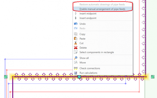 • Element Trasa przyłączy można przełączyć z trybu automatycznego w tryb umożliwiający ręczną edycję wygenerowanych przyłączy i odwrotnie, klikając w niego prawym klawiszem myszy i wybierając pożądany tryb.